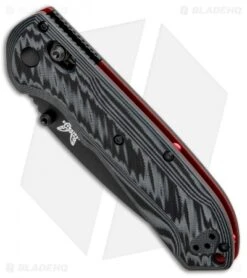 The Mini Griptilian features textured black handle scales (which are very strong and very lightweight). Double 410 stainless liners add strength to the knife handle. The blade is black finished. The pocket clip can be reversed for right or left handed people. The AXIS lock system makes the knife easy to open and easy to close (it operates identically for right and left handers). Features ambidextrous dual thumb-stud.