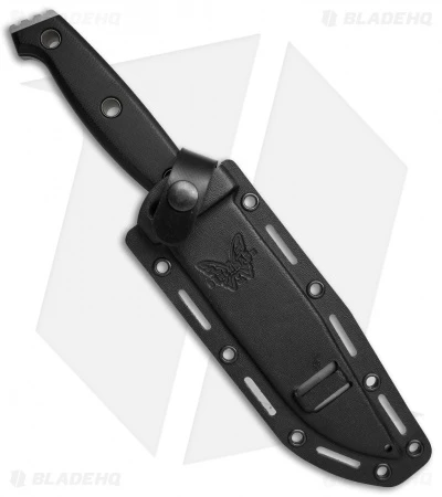 Shane Sibert designed this heavy-duty fixed blade for Benchmade. The Arvensis is a big knife that has a “light hand feel”. The nearly 6.5″ blade has a pronounced clip point profile and includes a large choil for choking up on. Contoured black G-10 scales are fastened to the full-tang 154CM steel blade with tube pins and straddle the fine line of comfortable grip. The Arvensis includes a Boltaron sheath with an innovative attachment feature.